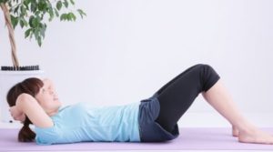 ①仰向けに寝転んで膝を立てる。